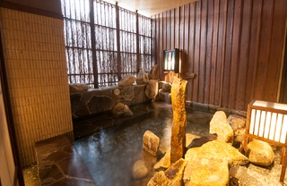 男女ともに大浴場内は、風情のある和風の装飾で、岐阜長良川で有名な鮎のデザインも。